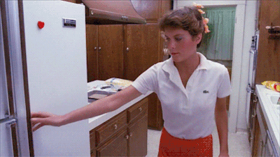 Is this movie great? Of course not. Is it good fun? It is to me! Are there boobs and chicks in their underwear getting killed while making out? Yep. I mean, come on, it’s just an old slasher movie. A girl eats pizza off of a dead body because she’s hungry anyway. Somehow, the killer comes in through a second story window – somehow – no ladder or scaffolding or pulleys that we know of. I mean – how can you not love it when the killer, who likes to hide in the shadow, hiss and (kind of) weep must have gone ahead and cleaned out the refrigerator, stowed its shelves and contents somewhere and then shoved a dead body in it? #win Classy!