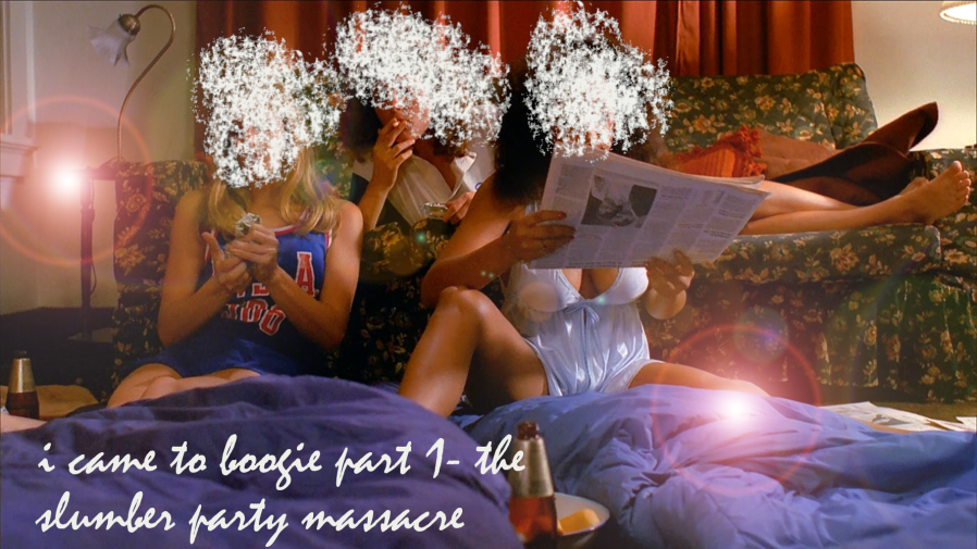 Film Miasma Disclaimer 2: You know, thinking about this series, I’ve never actually been to a slumber party. I had sleepovers at people’s houses – mainly, I think, to stay up late watching shit like Halloween and Friday the 13th and *AHEM* things like The Slumber Party Massacre *AHEM* but I never went to any of those big fun ones everyone seemed to have. Maybe no one liked me – I wasn’t a jock or cool or anything. Oh well – maybe that’s why I like boobs so much – I was never around any! Maybe…