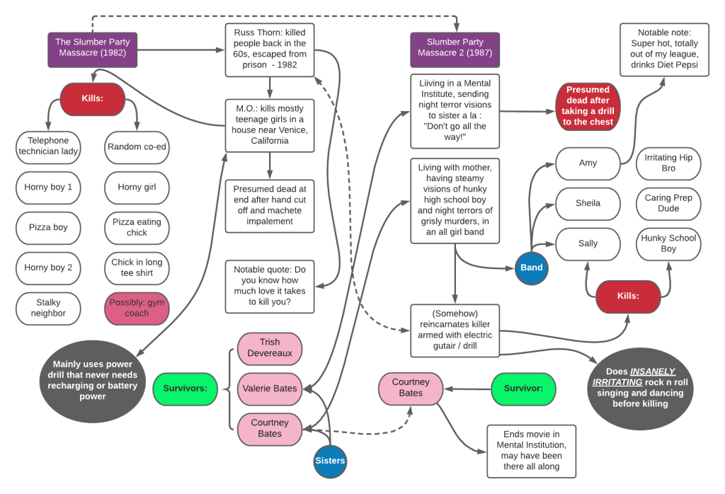 One thing I didn’t mention the first time around is that I can clearly see how it (the screenplay) (probably) started out as some sort of allegory of a girl turning into a woman and the dangers of having men stick their pointy dicks inside her because they’d just as fucking well kill her with it and everyone she loved. Right? The drill. The “Do you know how much love this takes?” The magically appearing inside a two story window with no ladder, drill in hand. Maybe not that last part but I can see the writer spending years on this story of womanhood and finally selling it to some studio guy she met while bartending on the Santa Monica Strip. Eventually she sees it onscreen and it’s a slasher flick with loads of tits but she didn’t have to blow him in the parking lot and got 500 bucks for her hard work.