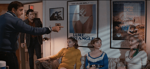 Oy. Back to the movie – I like that I found this last picture. That movie poster in the back: “Lure of the Triangle” with a picture of a bikini bottom. I thought that was just an inside joke and then, because of my diligence, I looked it up and….