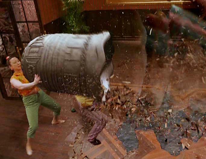 Sing and Bone go to this shitty little “village” called Pig Sty Alley and try to disrupt things but the hard-ass Landlady runs them off with a bunch of swift kicks to the ass. Later, The Axe Gang come to rid Pig Sty of its shit but they don’t know there are a couple of Kung Fu Masters hiding out in there, just trying to lay low. Fucking awesomely choreographed fighting ensues and soon enough, war is on the way to Pig Sty Alley.