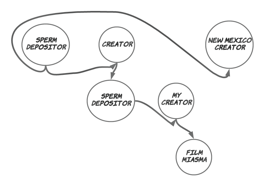 The Sperm Depositor who deposited Seed inside My Creator, Easy Rider-ed it off into the sunset when I was one (or so). Feeling guilty, his Creator would look after me on weekends and other miscellaneous weeks when My Creator was out looking for A Guardian who would provide Money and Food and Safe Haven to Her Birthed Egg while she was out doing things that Creators did before Their Egg was Fertilized and Fully Emerged. The Sperm Donor’s Creator had also a Depositor who Fled when the concept of Money and Food and Safe Haven were revealed – allegedly to a place called New Mexico. There, that Sperm Depositor deposited Seed to which, My Creator’s Sperm Depositor’s Creator discovered this Act and reconciled with That Creator in New Mexico.