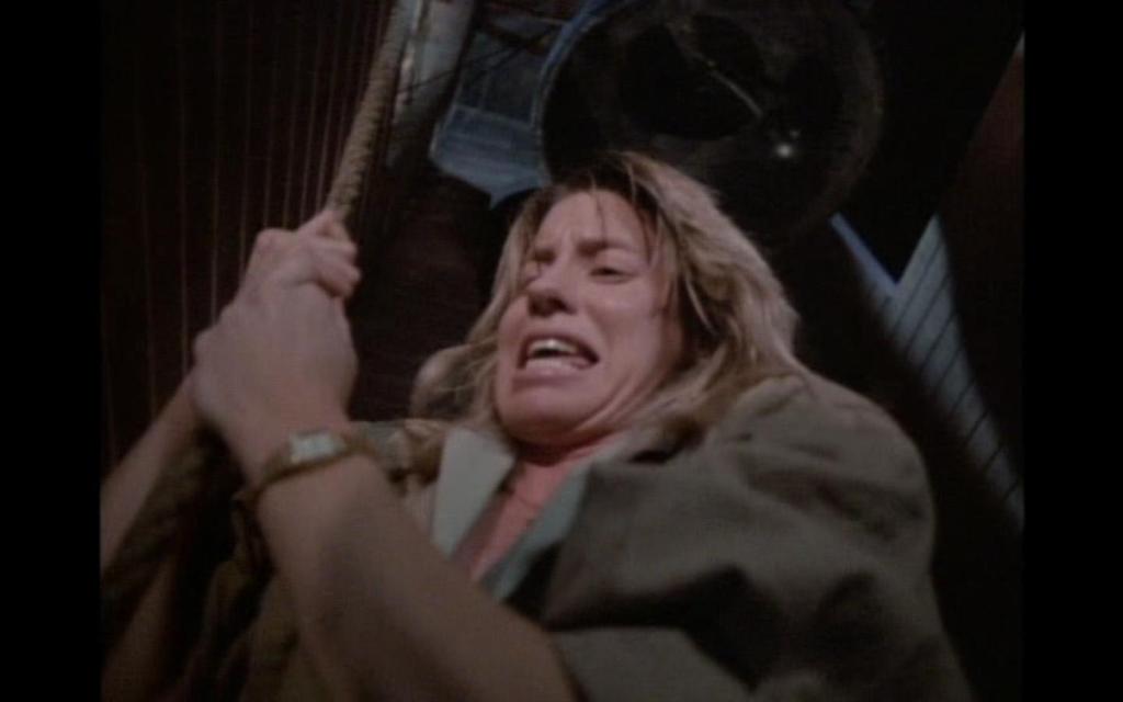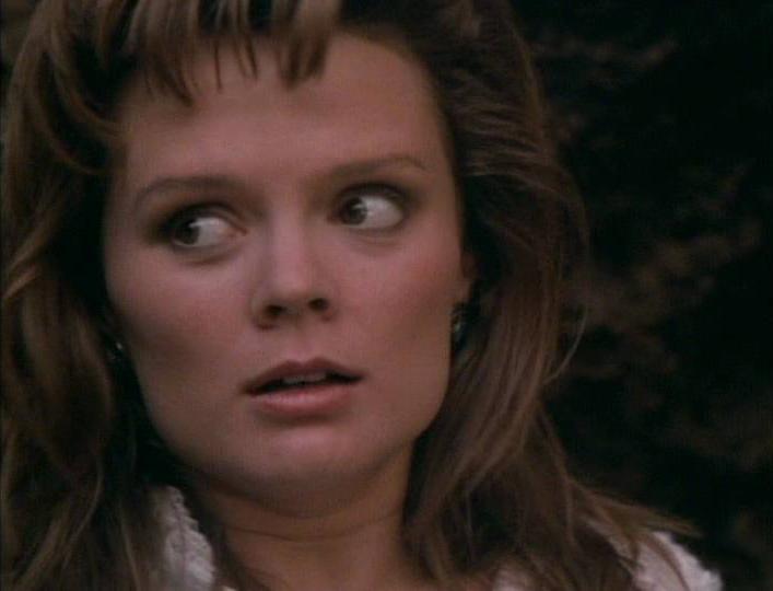 For the first 30 minutes or so of this, I kept talking to myself and asking, ‘what the fuck is with these voices?” I quick scan of the IMDB shows that someone at some point in their life bothered to put a piece of trivia on there that this entire movie was dubbed due to lack of budget. I’m guessing that means they couldn’t afford a boom mic back in the late 80s and – it seems – they couldn’t afford to get this group of acting people back in the studio to record their lines because the voices don’t match for fuckshit and all of the dialogue sucked. Because they certainly didn’t use their money on good special effects, lighting, casting, a solid script, costumes, wolf prosthetics, reasonable sets or nicely upholstered furniture. From the looks of things, I’m guessing most of their money went to hairspray, mousse, the fog machine or that random English guy who plays the town doctor with a cabinet full of valium in a town of maybe seven people. I suppose our leading lady (above) was nice enough with her super soft voice and ability to scream a few times but I think her most memorable scenes were running through the mist in the woods in slow motion. That’s we all did in the 80s, after all.