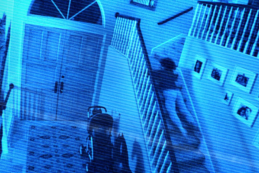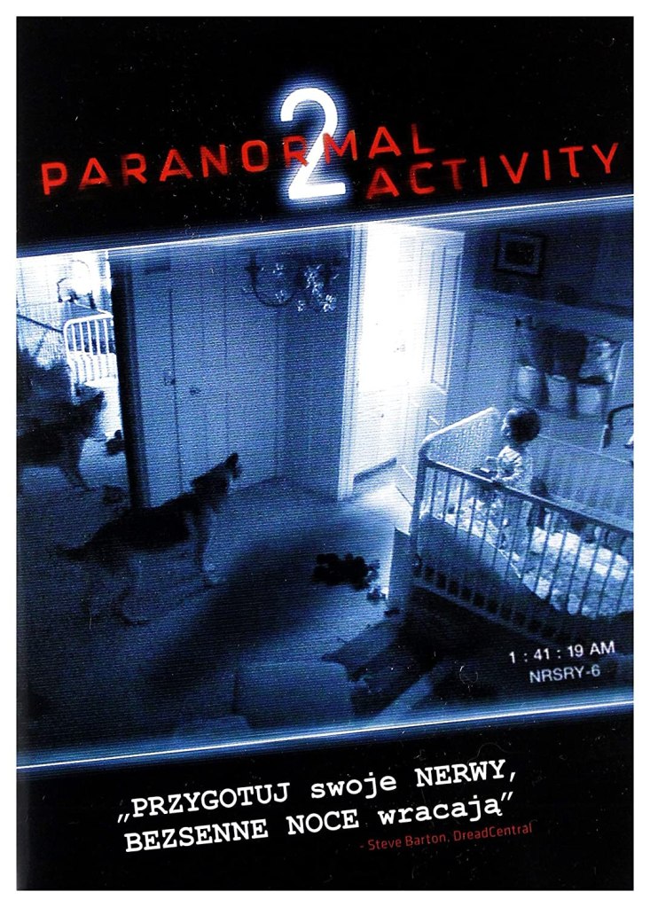 Hey! Paranormal Activity 2! Hey hey! Hey look! The baby isn’t in the mirror in the movie poster! God damn! What’s going on there? Everything’s going apeshit! MM HMMM MMM HMMMM! Right? Maybe? I guess! Maybe we’ll get to the technical aspects of this in a few minutes. I’m having trouble typing this up since I’ve had my surgery and I’m now a monoped, the only place I can really work or sit around comfortably until i get my new mechanical foot is this card table in the living room – and it’s not too bad but I forgot to turn the overhead light on before I sat down here and I don’t have the will to stand up and turn it on right now so – i’m basically typing in the dark. “So what, you stupid fuck, wait til later!” you urge, pushing me to stop altogether. Well, maybe, I guess, but I do get restless and bored and just lying around all day on the weekends gets pretty boring so – i’ll keep on for a little bit because… it gives me something to do I suppose.