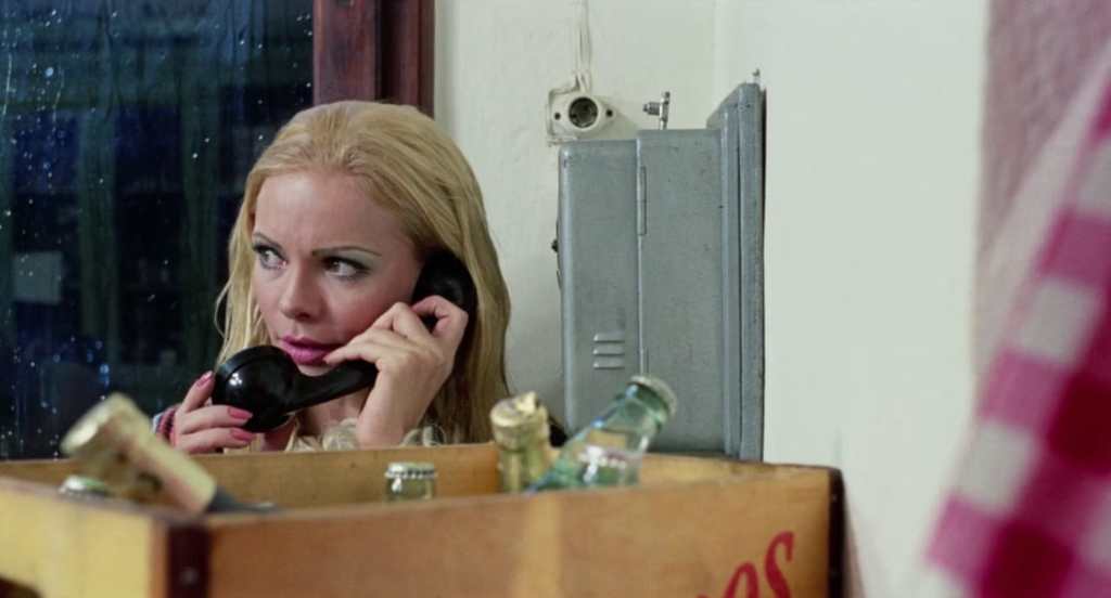 As these things go, soon she’s marooned at a mysterious hotel somewhere on the way to Rome, she’s drenched so she takes off all of her clothes and eats a ham sandwich by the fire in nude solitude until the family imbecile comes in, grabs her boobs and leaves. For real. SPOILER: soon she’s stabbed too and we suspect the man with the soft brain. Or the guy with the cat downstairs. Or the weird guy who sells cigarettes. Or the mom lady. Maybe it’s Merv Griffin.