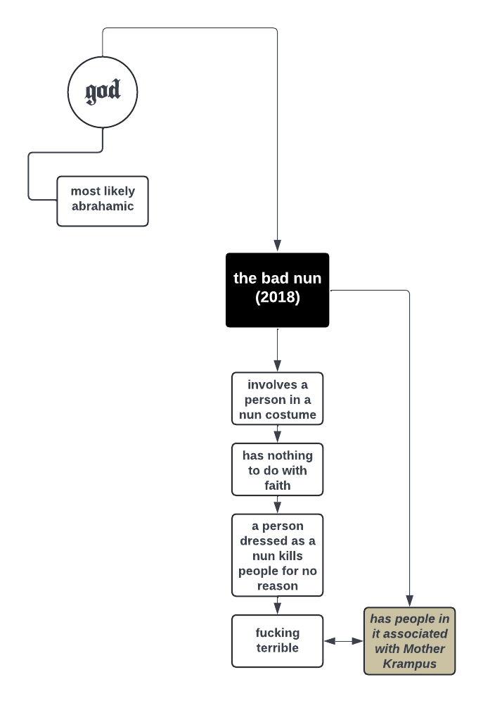 I too have been inundated recently with recommendations for all these various “Nun” movies and actually thought of watching through some of them myself. But judging by this, I think I’ll let you take one for the team here. I didn’t even like The Nun movie that I’m sure started this whole trend to begin with, and this looks 10x worse so…..godspeed friend.