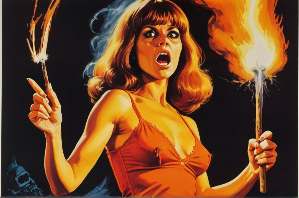 Hmmmm… I think the AI is getting better. Her left hand would *almost* look normal if it weren’t for that deformed middle finger. Though I am amused that the computer can’t seem to differentiate between a candle or a torch. So I guess it went with both, cause that is the torch-iest looking candle I’ve ever seen.