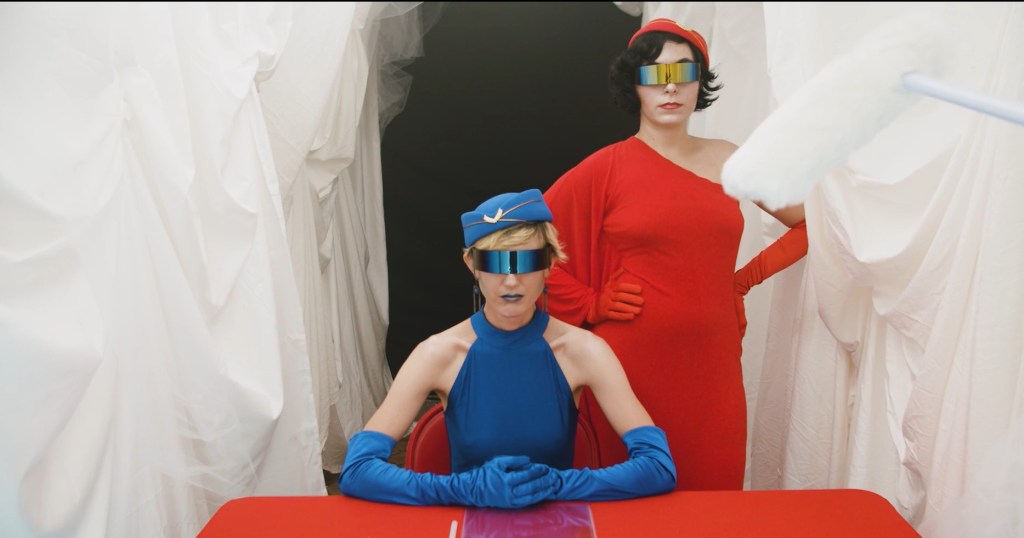 So this woman is approached by aliens in spacesuits and sunglasses and they stick this thing on her head and they ask her to explain her life (I think). Her parents died young and she was forced to take care of her sister and she couldn’t even afford loaves of meat and the sister dated some guy that gave her an eyeball and got his head blown off and the sister went missing so the older sister took in this art school student as her new sister (I guess) and the new girl starts eating raw meat and dogs and they have this big fight where they’re in leotards and using zap zap pew pew laser sound effects and then the one sister turns out she killed the other sister so she goes to redeem herself in a bathtub full of blood and when she emerges she’s a man now and he’s Jesus. Got all that?