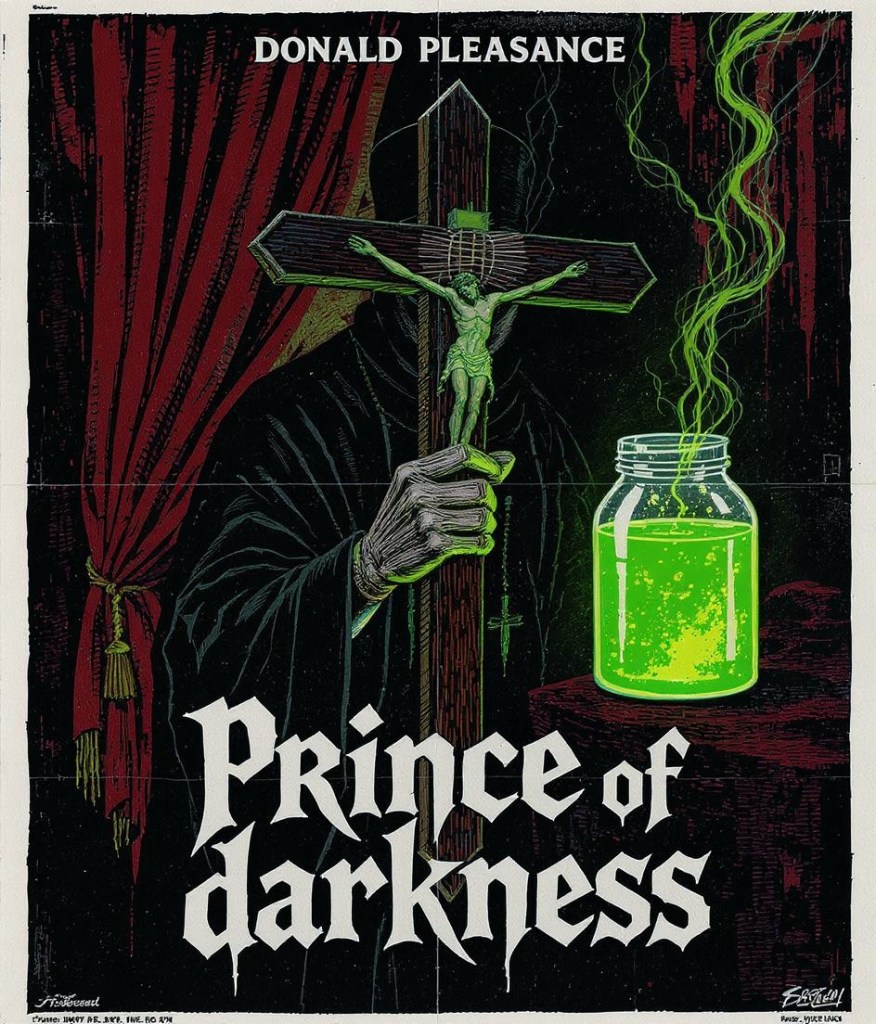 I saw this back in the theater back in the old days so that’s a good memory for me to start with. I was just able to drive and my dad gave me his old car – a 77 Buick Century and we tore shit up out there (as far as you can tear shit up in a 77 Buick Century). This is when we were now living in the big city but I remember when it was still fun to go steal beer and go off into the country and the dirt roads and sit out in the fields and turn the radio up and not have to worry about taxes and mortgages and shitassdouchebag bosses or getting up at 530 or 6 every single morning and boo hoo cry cry and anyway those were the good old days. And I remember I went to see it with this girl named Jennifer and I drove her all around and we went to this movie and held hands in this thing and maybe I was real smooth and put my arm around her shoulders but I don’t remember exactly but that’s a good set of memories there for what are left of them with her but i remember now that things didn’t go crazy in there because that was in They Live and I saw Prince of Darkness with this other girl I dated named Shelly. Normally this would be the place to probably start rambling and blathering about this or that but I don’t want to doo doo around one of my favorite things and attract stinkbugs so let’s zip up our shirts and re-staple our trousers and talk.