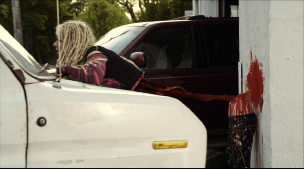 This down on his luck fellow just can’t keep a goddammed job and most of that is because he has no car and has to take the unreliable bus everywhere. Eventually the unemployment agency gets him a job at a car wash which is run by a bow tie wearing chucklehead named Mr Kaufman and their slogan is something like “buffing muffs since 69” or something classy like that. In the meantime a rusty dirty beat up presumably semen splattered van has picked up a couple of people and killed them gruesomely. Why? No one knows but the mechanics of they way Creep Van has been set to murder people seems pretty illogical and when someone decides to get into Creep Van, you’d think they see these contraptions and be all “no thanks brah” but that’s not the case and they are brutally gored or smashed or split or their head gets smashed like a grape.