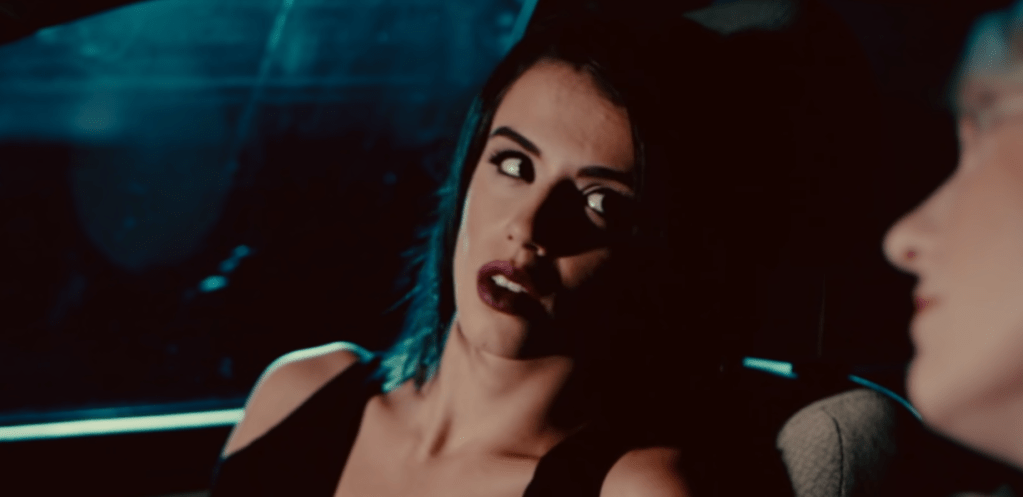 This movie starts off with some good looking makeup effects on a survivor of Art the Clown’s massacre. Then we shift to two attractive females in their 20s who are out for Halloween and are now crunk. As they fumble to get in their car they see a guy in a clown outfit walk by carrying a garbage bag full of something. “Look he’s in love with you and he’s horny and has a boner and wants to stick it in you and make clown babies and grow up and be a clown daddy don’t you love him isn’t he hot oh baby baby ride him like a Harley Davidson” one of them says slapping her thighs and gyrating around all over the street like some kind of Greek, “he so horny he so horny he love you long time him big poppy” and continues. “Where are we, Persia?” says the other and they go get some pizza to cure their crunkedness.